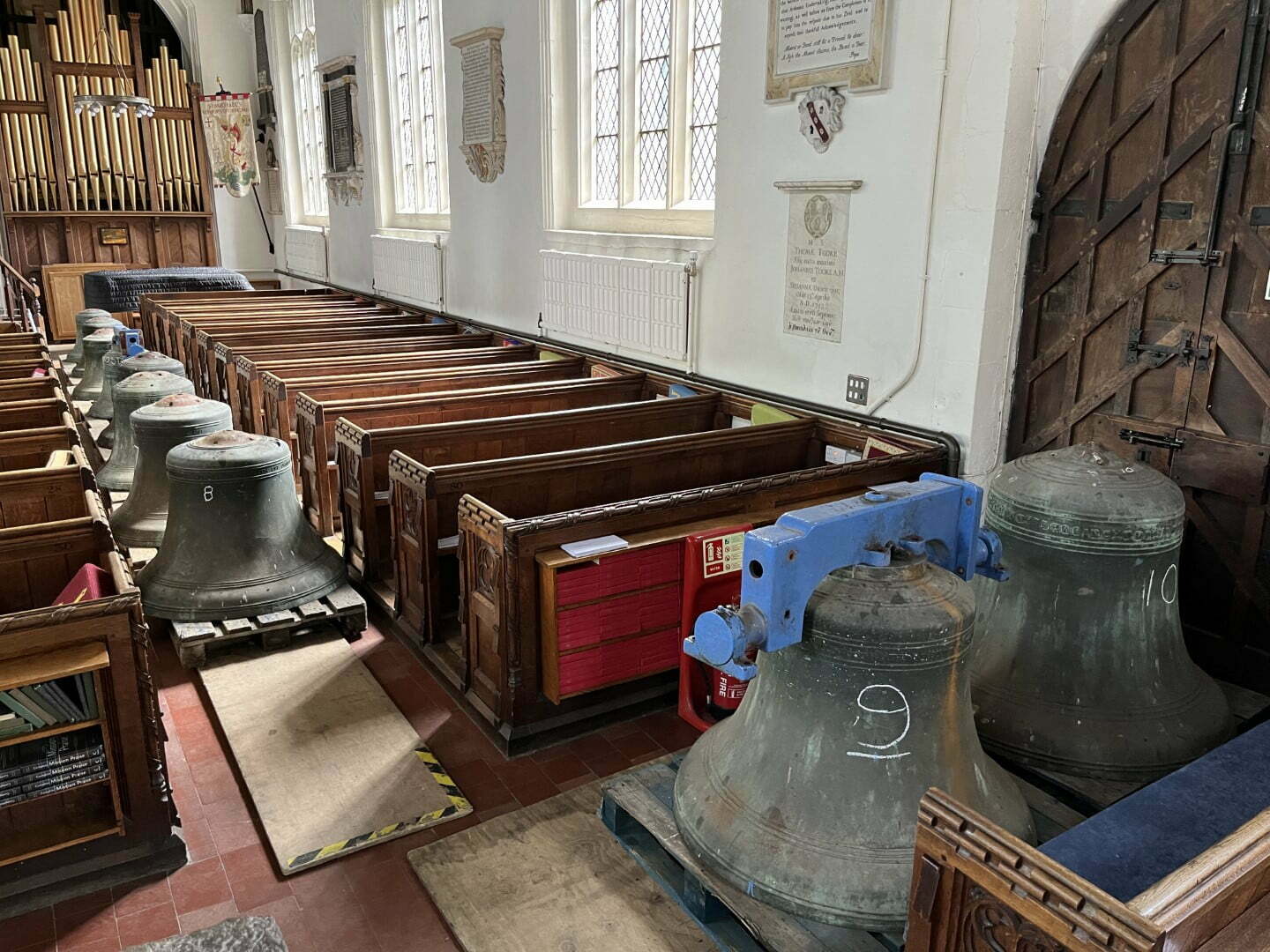 We are pleased to have been able to donate some Hutton PPE and small plant to enable the volunteers to work safely during this fascinating £300,000 restoration project to restore and upgrade the bells of St. Michael’s Church in Bishop’s Stortford, Herts. An experienced campanologist (bell ringer) himself, our Preconstruction Director Nick Hughes shown in the photo carefully steering the pallet truck, volunteered his time earlier this month to help with the safe removal of the bells from the church.